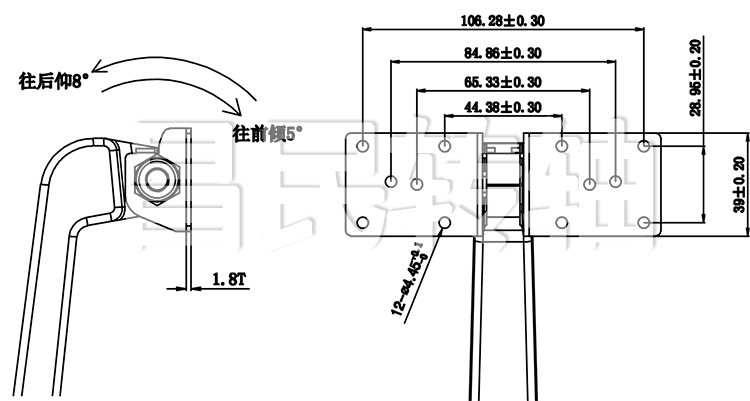 電腦顯示屏轉軸,轉軸和底座一體化,底座使用鋅合金壓鑄件,表面鍍锘,外觀精美大方,昌民轉軸可整體提供底座轉軸方案。