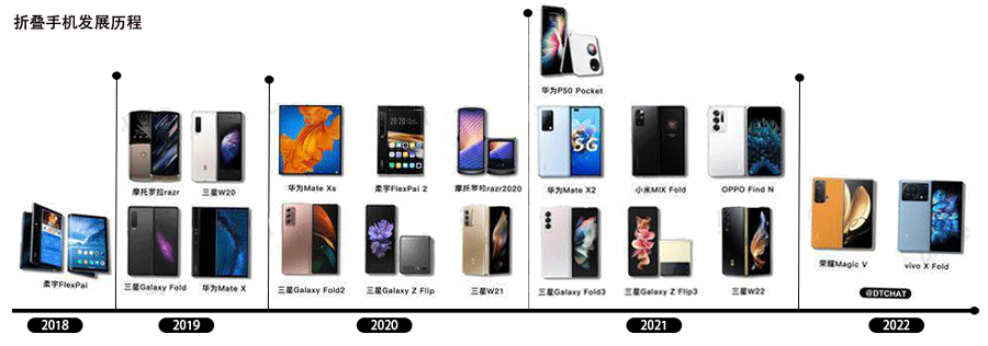 1974年-2018年,從一項深居實驗室的Gyricon”柔性電子紙顯示屏技術-柔宇FlexPai全球首,打開了手機的新形式-折疊屏再到折疊屏手機神仙打架的2021年。三星用UTG取代CP,多角度自由旋轉鉸鏈技術,裝甲鋁材料創造更耐用的機身,創造了折疊屏幕手機新的水平;華為MateX2采用了新的內部折疊設計,成為了高端折疊屏幕手機的天花板OPPOFindN將折疊屏幕手機從新的數字技術玩具演變為具有實際使用價值的折疊屏幕手機,可用于日常生活。即使是用戶評論褒貶不一的小米MIXFold也標志著MIUI版折疊手機的起點,具有積極意義。2022年1月10日晚,榮耀發布了第一款折疊屏幕產品Magicv,華為、vivo、小米折疊屏幕手機也將發布旗下新款折疊屏手機